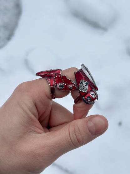 Made from solid 316L stainless steel, this ring features bold, hand-painted red enamel inspired by the iconic bike. Built with a smooth articulating hinge, the ring bends and flexes with your every move.