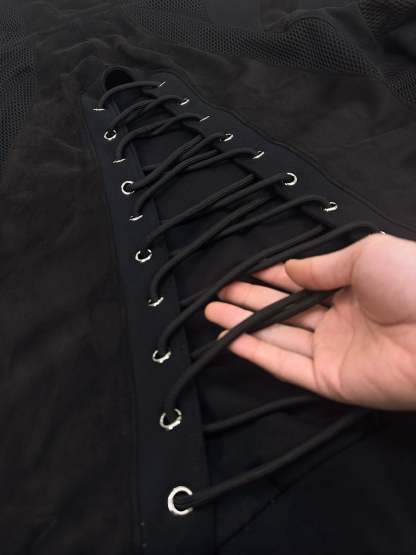 This hoodie is made by mixing different fabric textures for a unique look and feel. It’s made from 100% cotton French terry (right and reversed side), combined with polyester rib, mesh, suede, and jersey panels for extra structure and comfort.