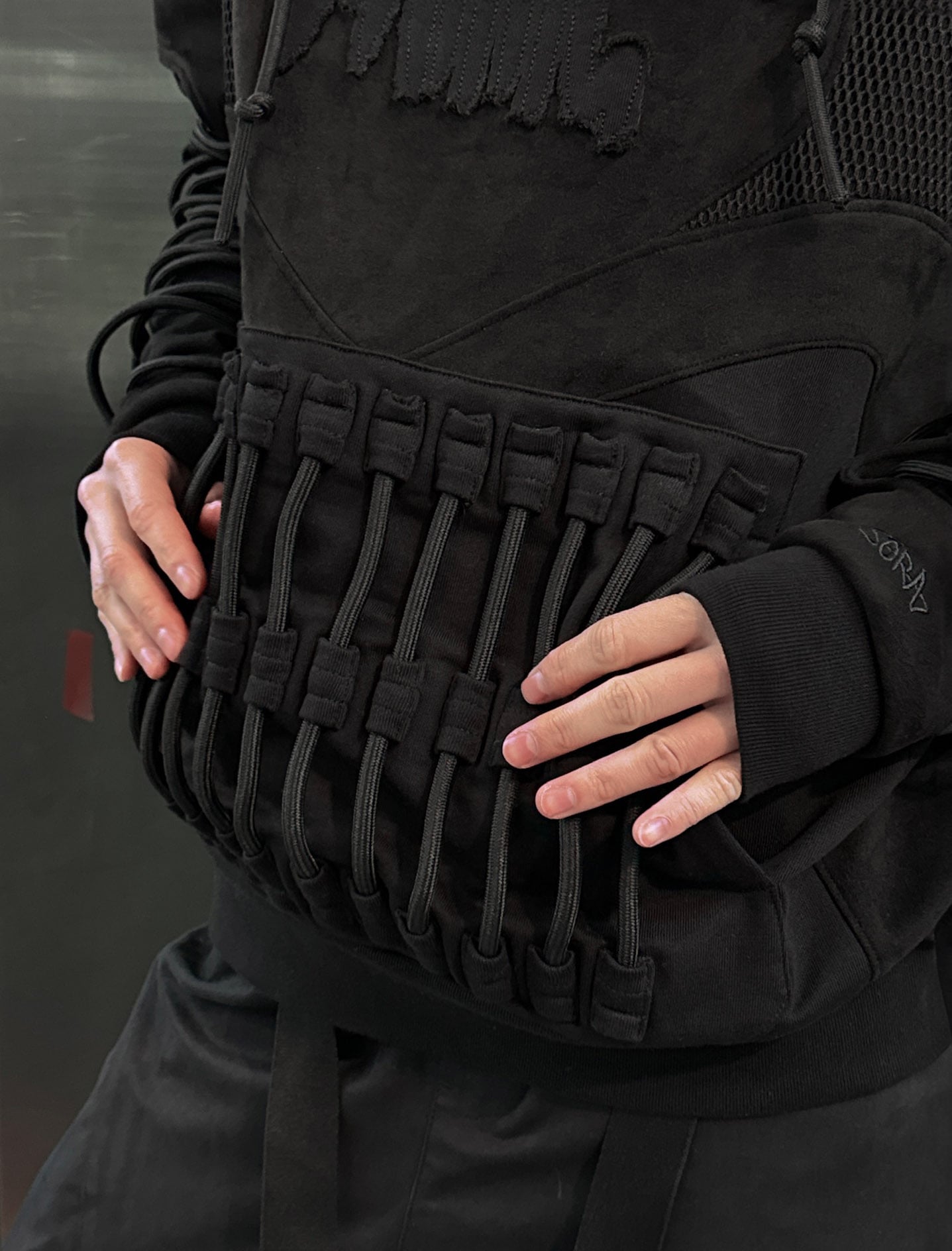 - Thick cords on the front, back and sleeves