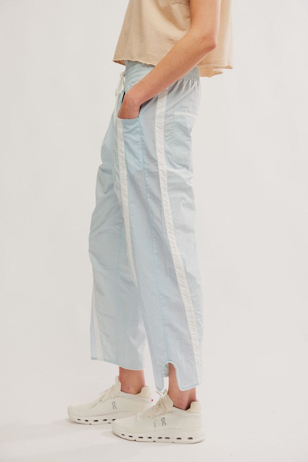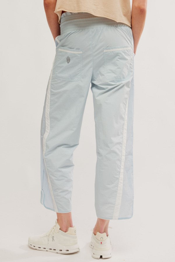 Hey Babe, Join the barrel silhouette on your next journey with these smooth and airy pants. Crafted from 100% nylon fabric and coated with a water-resistant finish, they provide durable protection on the move. Featuring a chic high-waisted, 7/8 length design, they're lightweight and breezy for unrestricted movement on the go. Also available in .