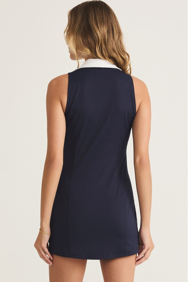 Hey Babe, Get ready to meet a dress that blends preppy style with top-notch performance. This mini dress boasts a sleeveless, collared design and a unique half-zip feature. Made from moisture-wicking Pure Performance fabric that offers 4-way stretch, it's the ideal choice for busy days that require both polish and comfort.