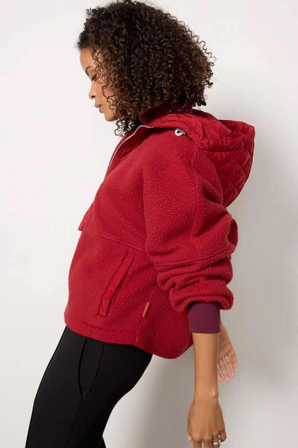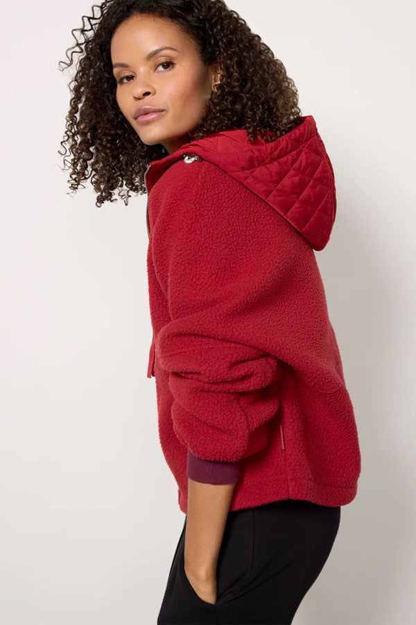 Hey Babe, Elevate your layering game with the Richfield jacket. Made from ultra-soft Borg fleece, this oh-so-cozy jacket boasts handy side pockets, customizable hood ties, and a quilted front panel for added warmth.