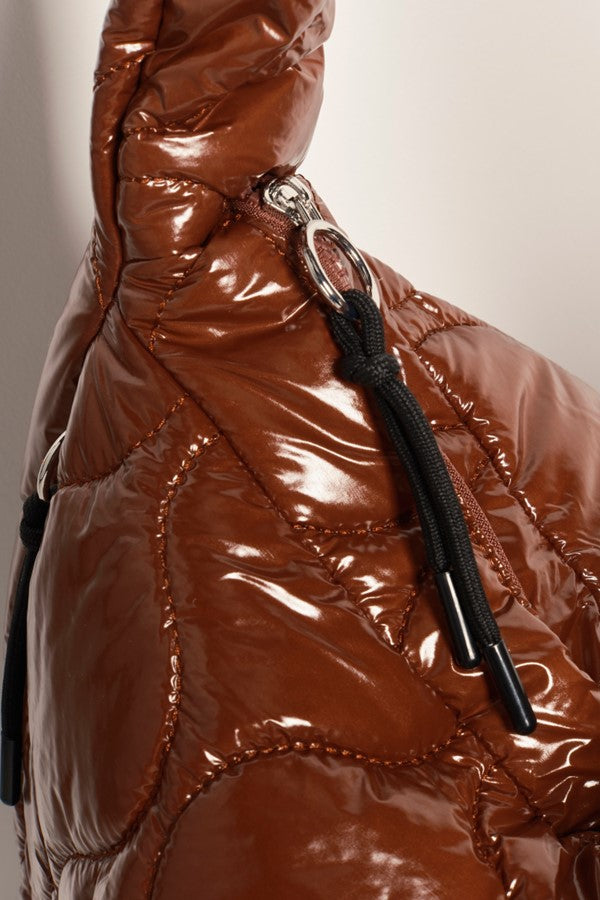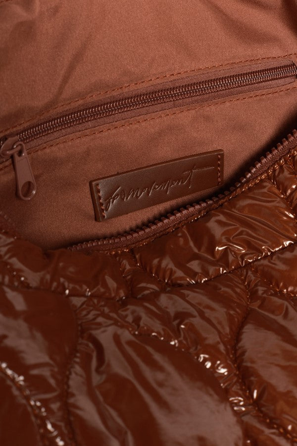 Hey Babe, Looking for a stylish and practical carryall? Look no further than this oversized, shiny quilted bag. It's versatile enough for any outfit and adds a unique touch to your fashion or fitness game.